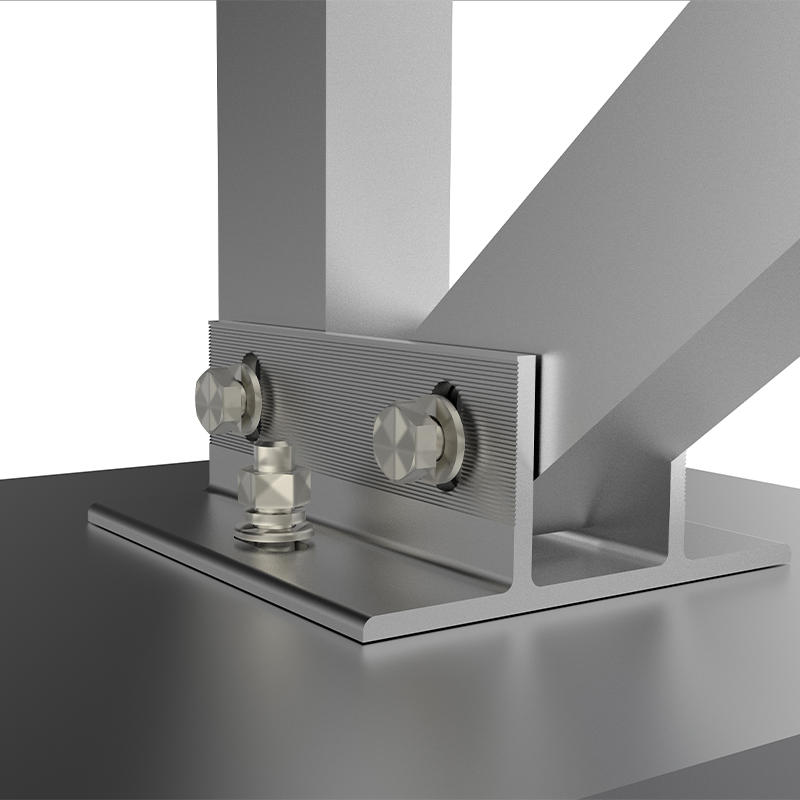 Is córas gléasta é gléasadh PV neamhthruaillithe atá deartha le haghaidh díonta cothroma coincréiteacha. Baintear úsáid as frith -mheáchain choincréite réamhdhéanta chun poill a dhruileáil chun dochar a dhéanamh don chiseal uiscedhíonta dín. Tá an príomhchomhlacht déanta as cruach ghalbhánuithe nó cóimhiotal alúmanaim te-snámh, atá frithsheasmhach in aghaidh creimthe agus éadrom, agus a thacaíonn le coigeartú 10 ° -30 ° chun éifeachtúlacht soilsithe a bharrfheabhsú. Tá sé oiriúnach do chomhpháirteanna gloine dúbailte agus do phainéil fhótavoltacha éadroma. Tá sé réidh le tógáil agus tá costais chothabhála ísle aige. Úsáidtear go forleathan é i radhairc dín choincréite amhail plandaí tionsclaíocha agus tráchtála, foirgnimh phoiblí, srl.