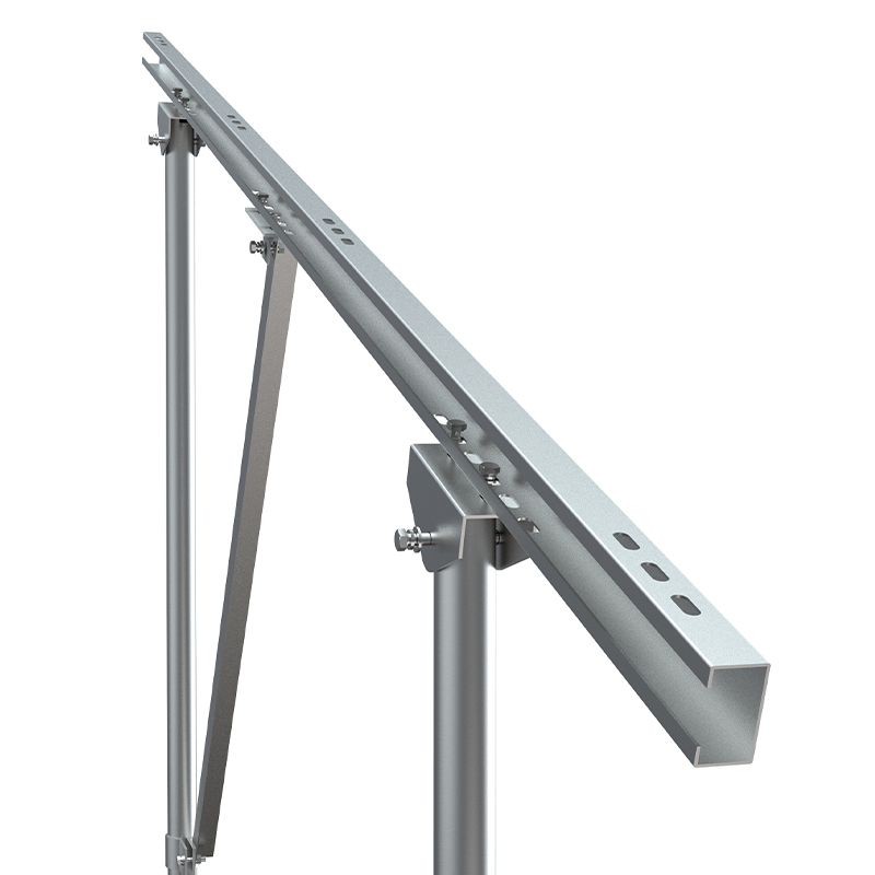 Glacann gléasadh PV dúbailte le struchtúr colún dúbailte siméadrach, agus cuirtear leis an déine foriomlán trí chónaisc thrasnaí. Tá an fheidhmíocht ualach agus atá frithsheasmhach in aghaidh na gaoithe i bhfad níos fearr ná an fheidhmíocht i gcolún amháin. Is é an príomhchomhlacht cóimhiotal cruach nó alúmanaim ghalbhánuithe, atá oiriúnach do shocrú comhpháirte mór-réise agus dearadh ard-uillinn. Is féidir cairn leabaithe nó piaraí coincréite a fheistiú ar an bhfondúireacht. Tá sé oiriúnach do cheantair sléibhtiúla agus cósta le brú gaoithe ard nó ualach sneachta trom, ag cinntiú cobhsaíocht an stáisiúin chumhachta i rith a shaolré. $ $